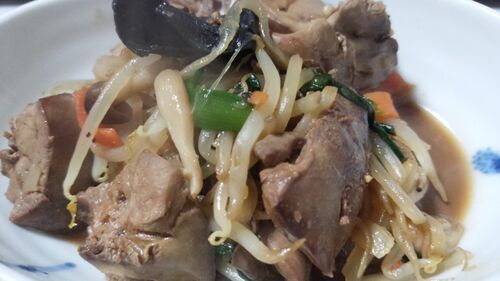 日曜日のあの(笑)食事はいつ消費されるのかな~ と思いながら、今日は鶏レバの炒め煮。 本当は煮込みにしたかったのに、料理酒が無く、 さらに、ビール以外も無く… なんという失態。 仕方なくみりんで代用、結局炒めるしかなく、 しょうがはチューブで代用。…